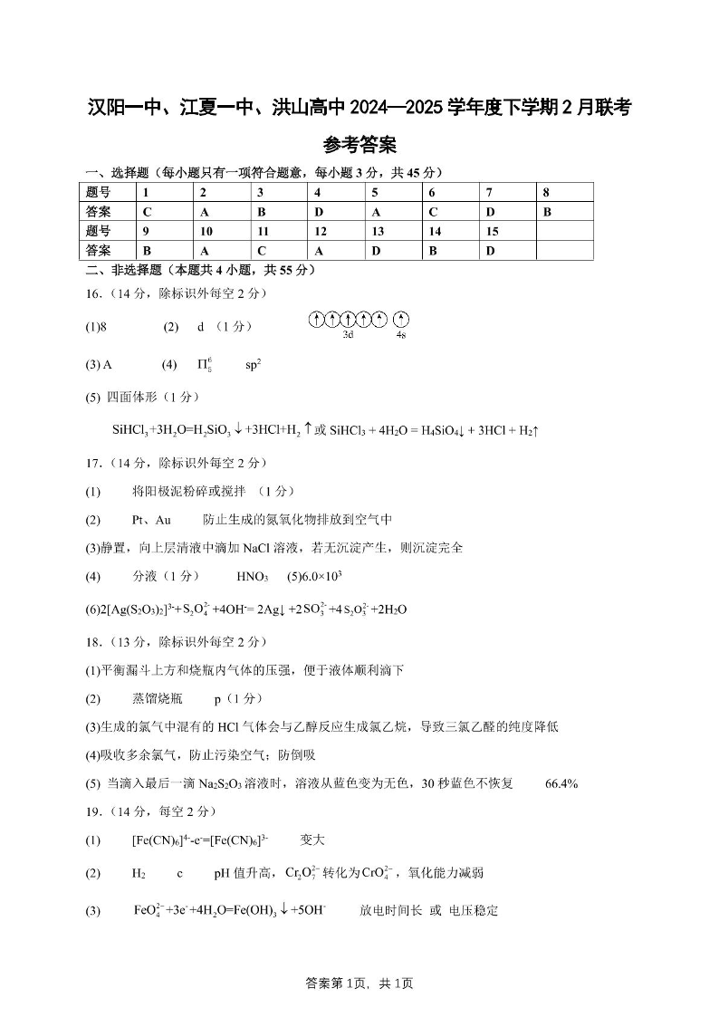 湖北省部分学校2024-2025学年下学期高二2月联考化学答案