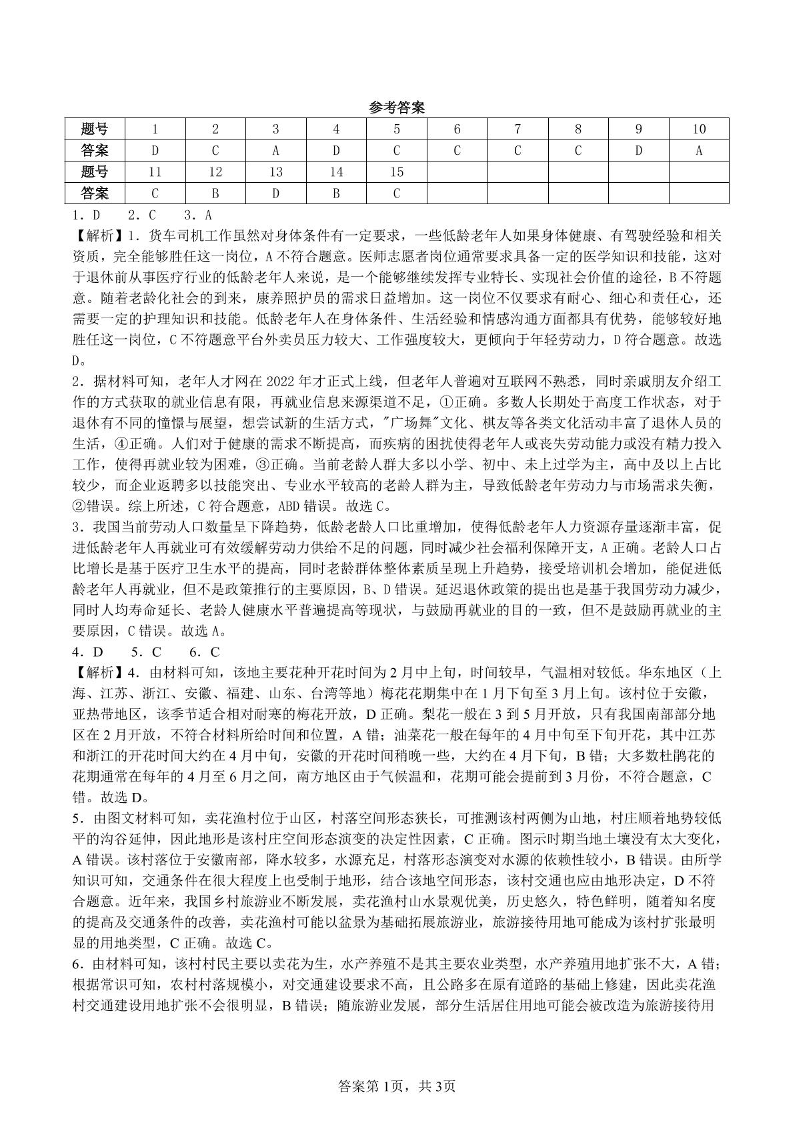 湖北省部分学校2024-2025学年下学期高二2月联考地理答案