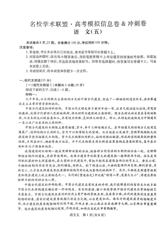河南省名校学术联盟2024-2025学年下学期高三模拟冲刺(五)语文
