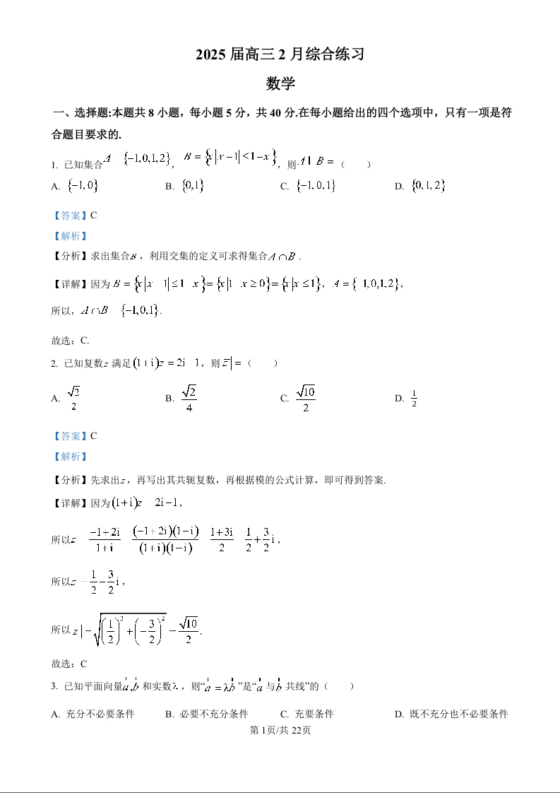 江苏省锡山高级中学2024-2025学年下学期2月高三综合练习数学答案