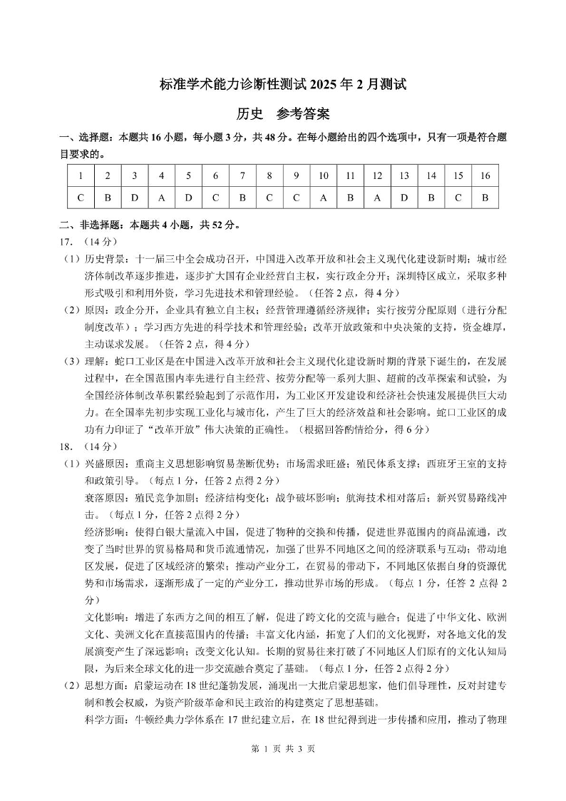 标准学术能力诊断性测试2024-2025学年下学期2月测试历史答案