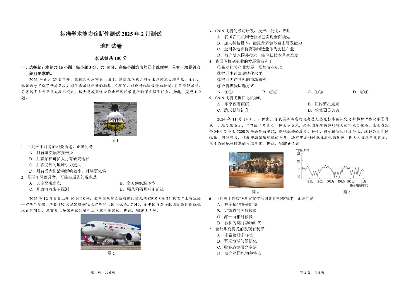 标准学术能力诊断性测试2024-2025学年下学期2月测试地理
