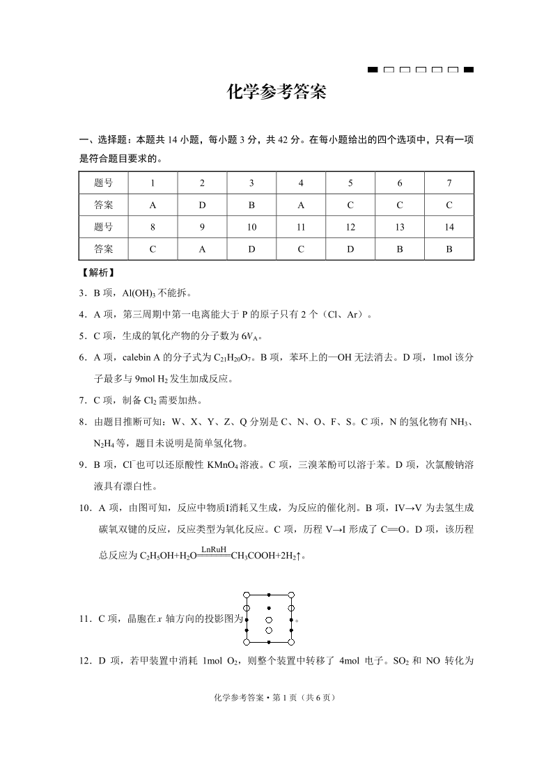 重庆市第八中学2024-2025学年下学期高三高考适应性月考(五)化学答案