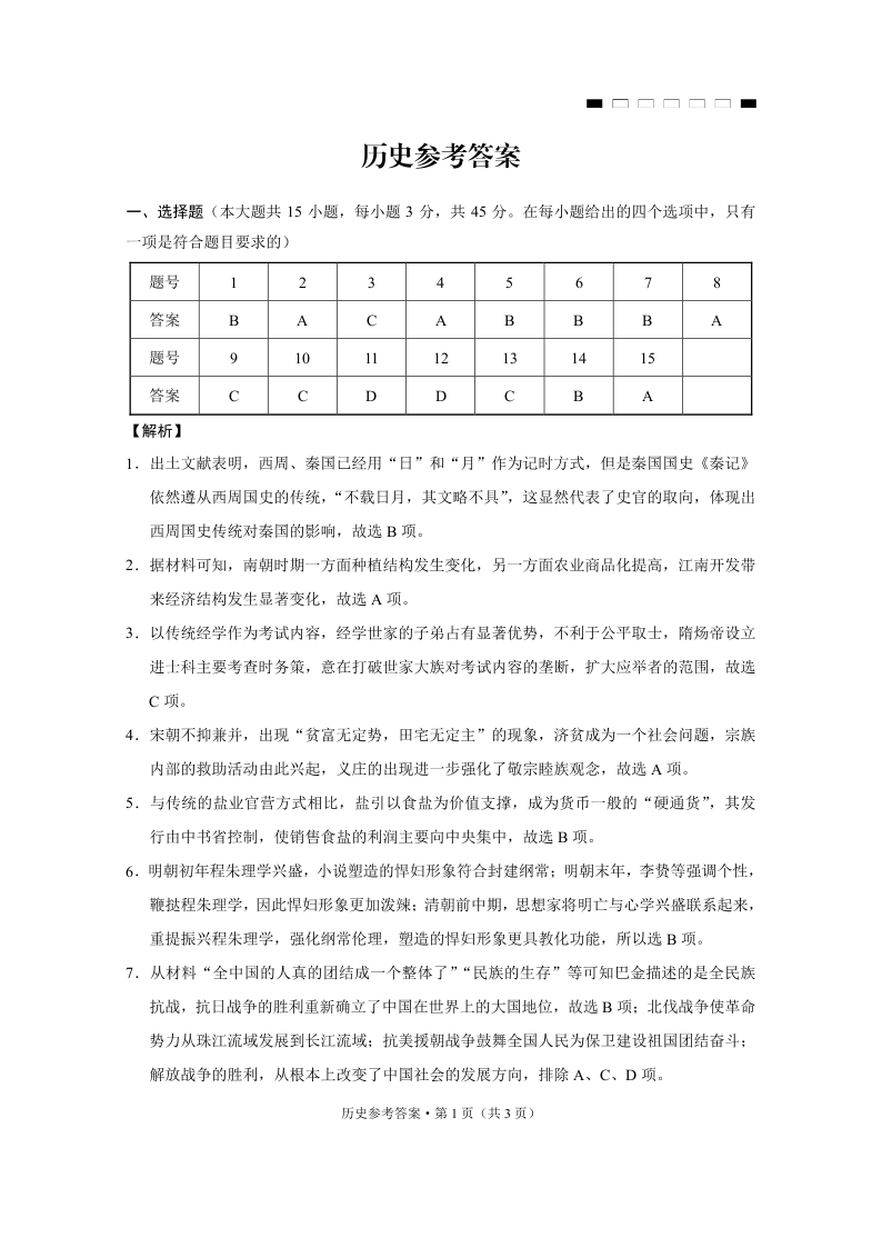 重庆市第八中学2024-2025学年下学期高三高考适应性月考(五)历史答案