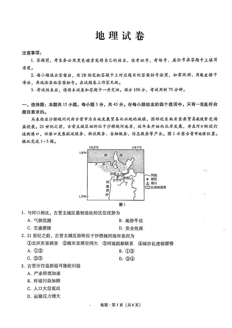 重庆市第八中学2024-2025学年下学期高三高考适应性月考(五)地理
