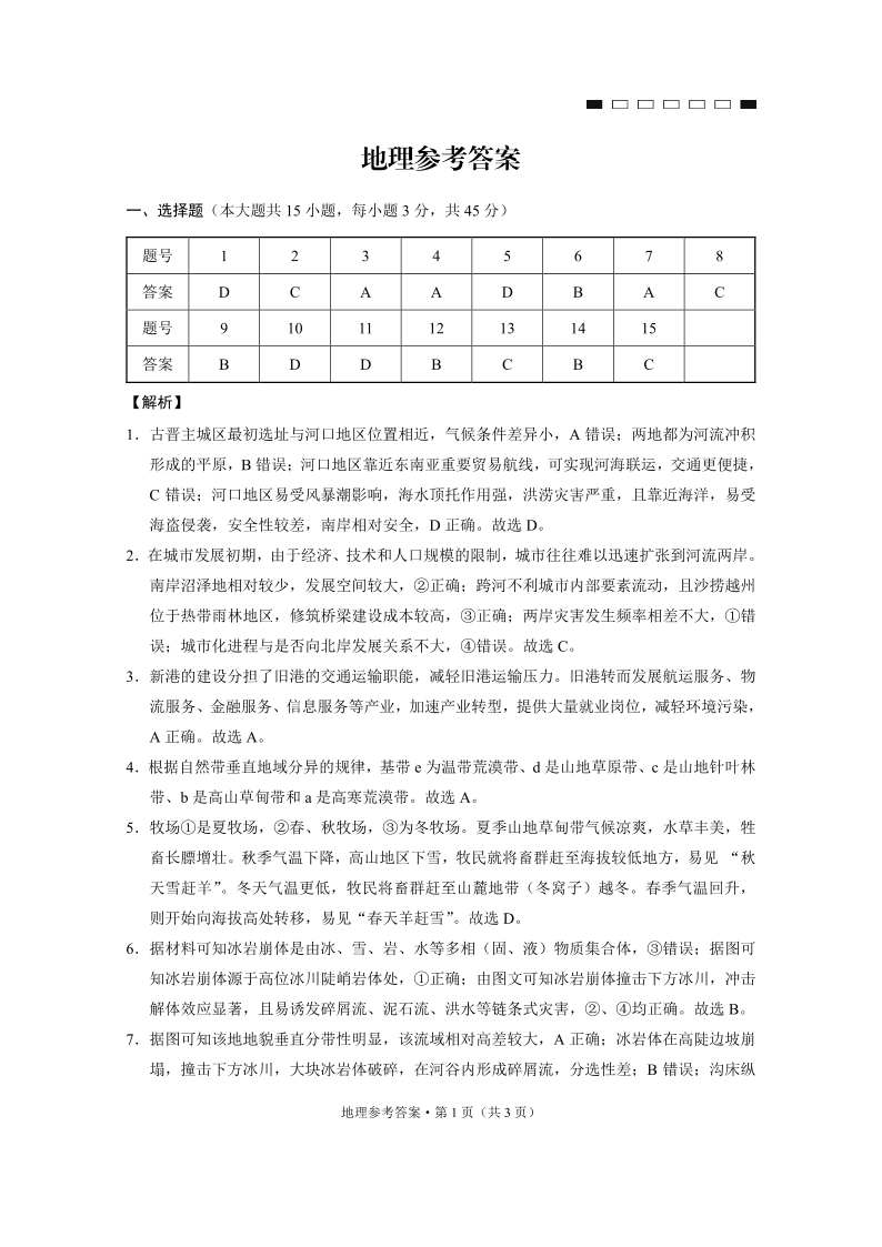 重庆市第八中学2024-2025学年下学期高三高考适应性月考(五)地理答案
