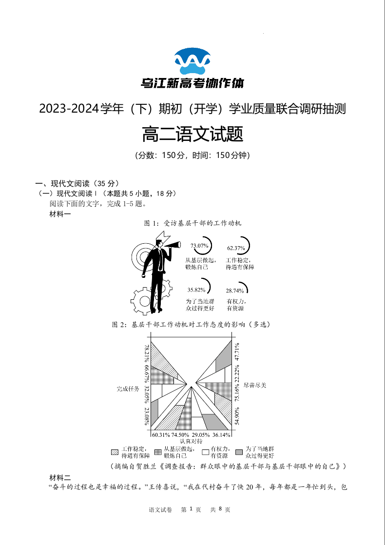 重庆市乌江新高考协作体2023-2024学年高二下学期开学学业质量联合调研抽测语文