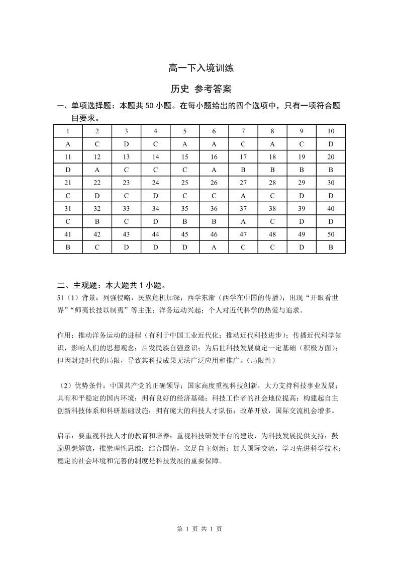 广东省实验中学2024-2025学年下学期2月高一开学考试历史答案