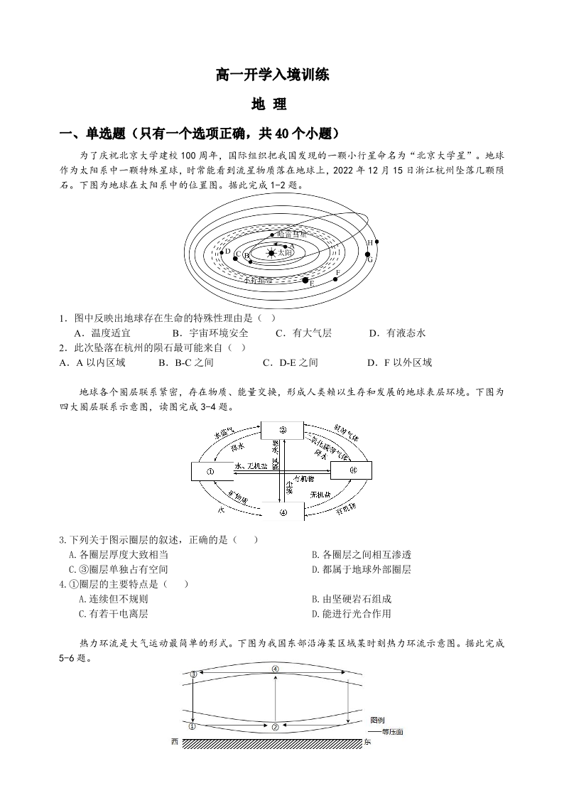 广东省实验中学2024-2025学年下学期2月高一开学考试地理