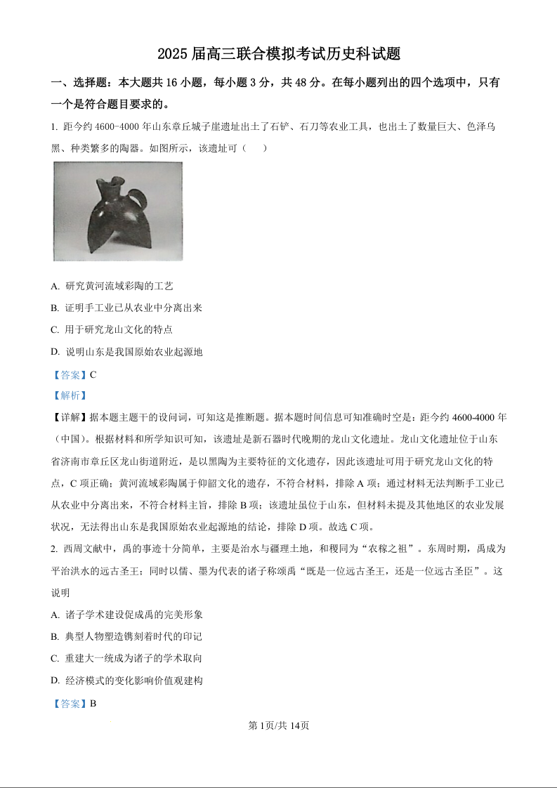吉林省东北师大附中(五校联考)20224-2025学年上学期1月高三期末考试历史(精品解析版)