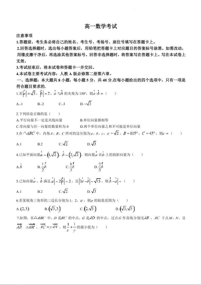 河北省保定市部分高中2023-2024学年高一下学期3月月考数学+答案