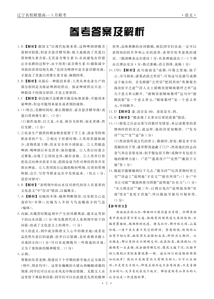 辽宁省名校联盟2023-2024学年高一下学期3月联合考试语文答案