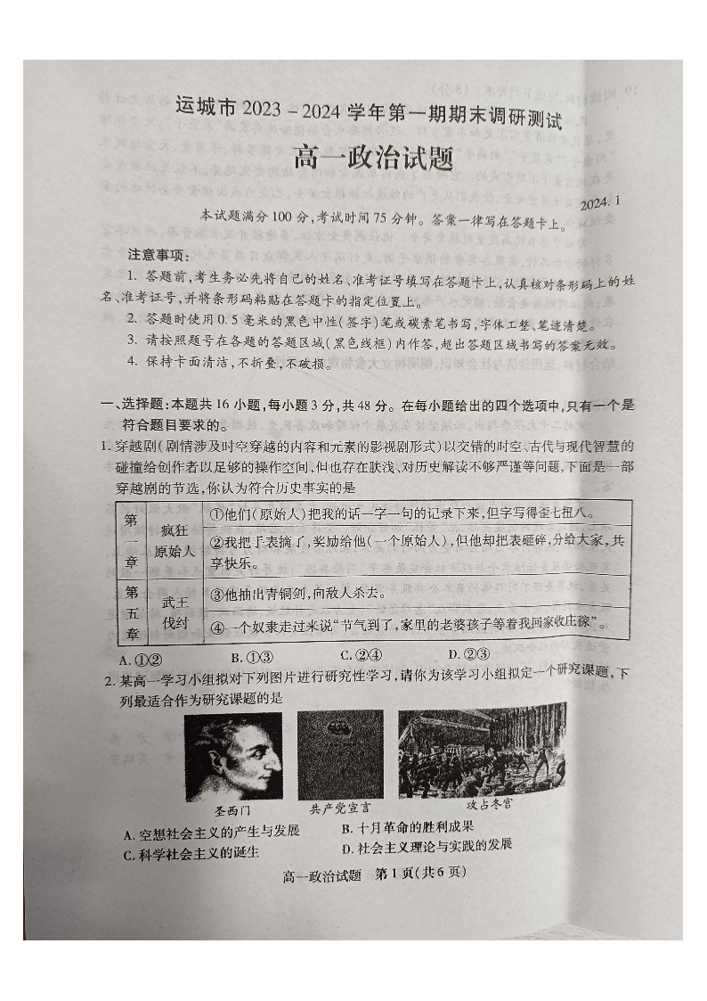 山西省运城市2023-2024学年高一上学期期末考试政治