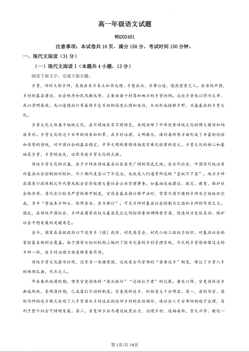 陕西省宝鸡市渭滨区2023-2024学年高一上学期期末考试语文(精品解析版)