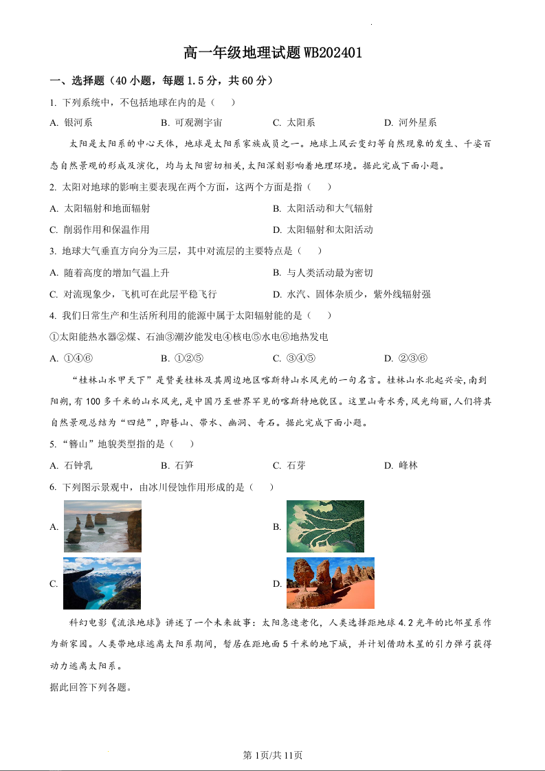陕西省宝鸡市渭滨区2023-2024学年高一上学期期末考试地理(原卷版)