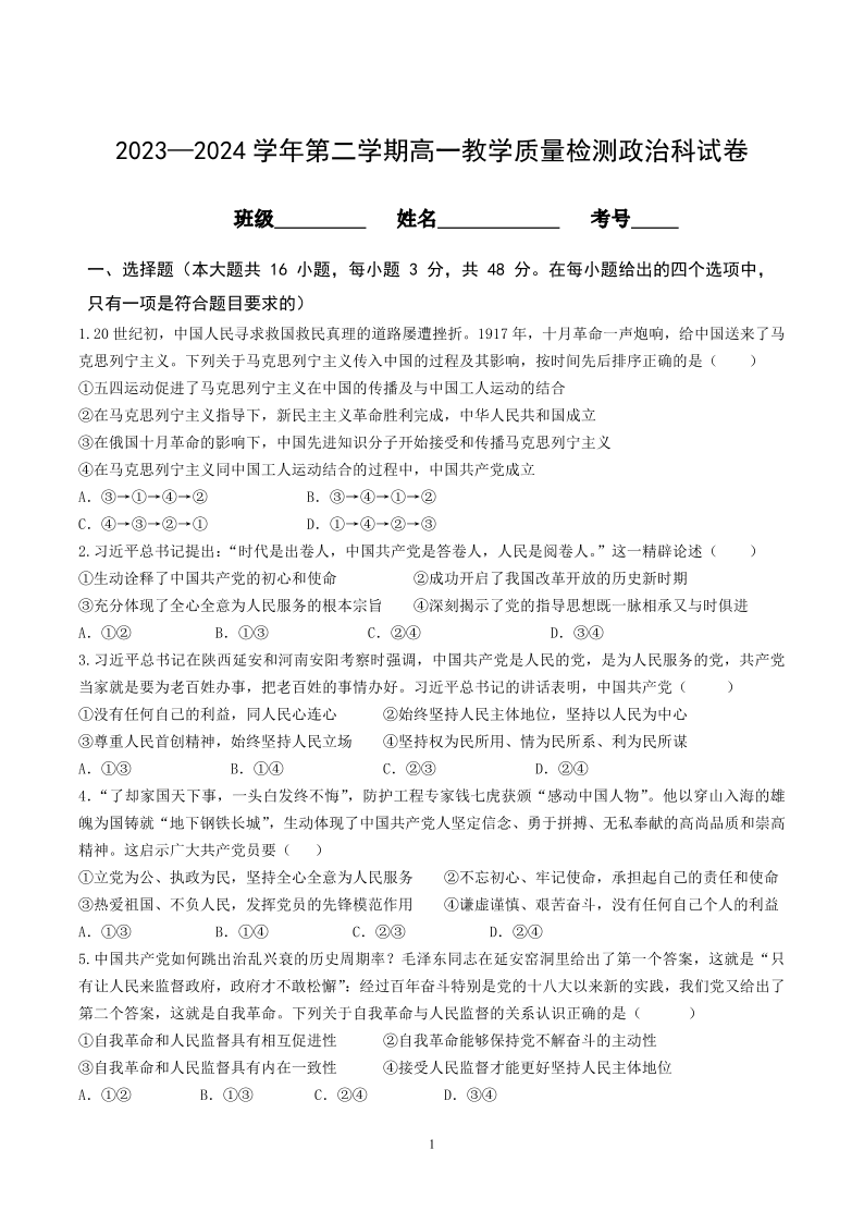 广东省四会中学、广信中学2023-2024学年高一下学期第一次月考政治
