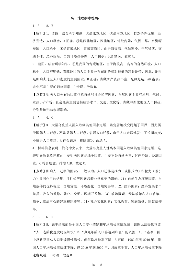 河北武强中学2023-2024学年高一下学期期中考试地理答案