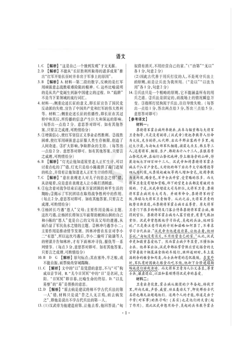 衡水金卷先享调研2025年普通高等学校招生全国统一考试模拟试题(一)语文答案