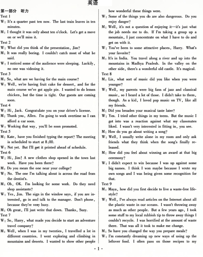 衡水金卷先享调研2025年普通高等学校招生全国统一考试模拟试题(一)英语答案