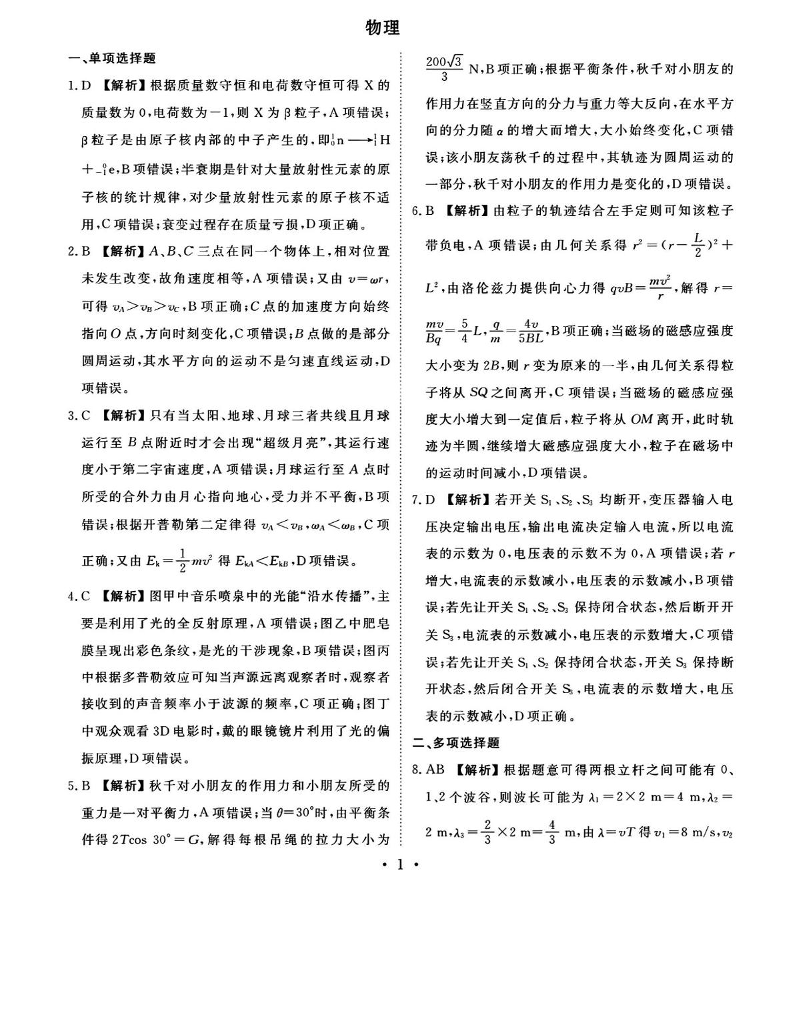 衡水金卷先享调研2025年普通高等学校招生全国统一考试模拟试题(一)物理答案