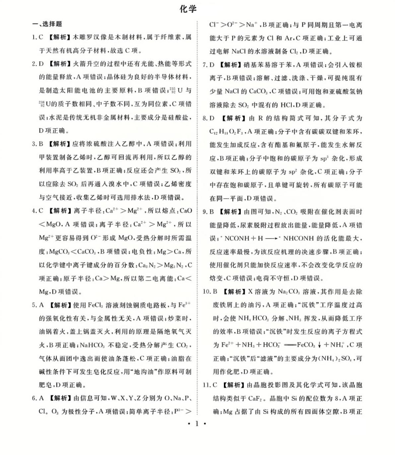 衡水金卷先享调研2025年普通高等学校招生全国统一考试模拟试题(一)化学答案