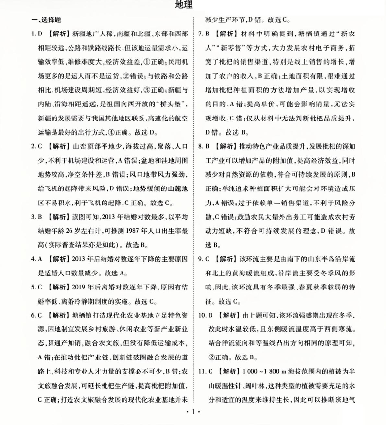 衡水金卷先享调研2025年普通高等学校招生全国统一考试模拟试题(一)地理答案