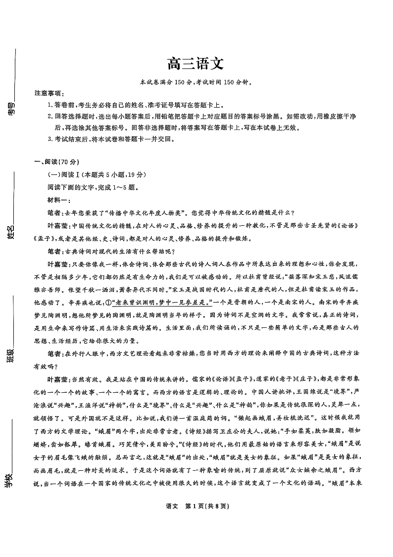 东北三省精准教学联盟2025届高三下学期3月联合模拟语文