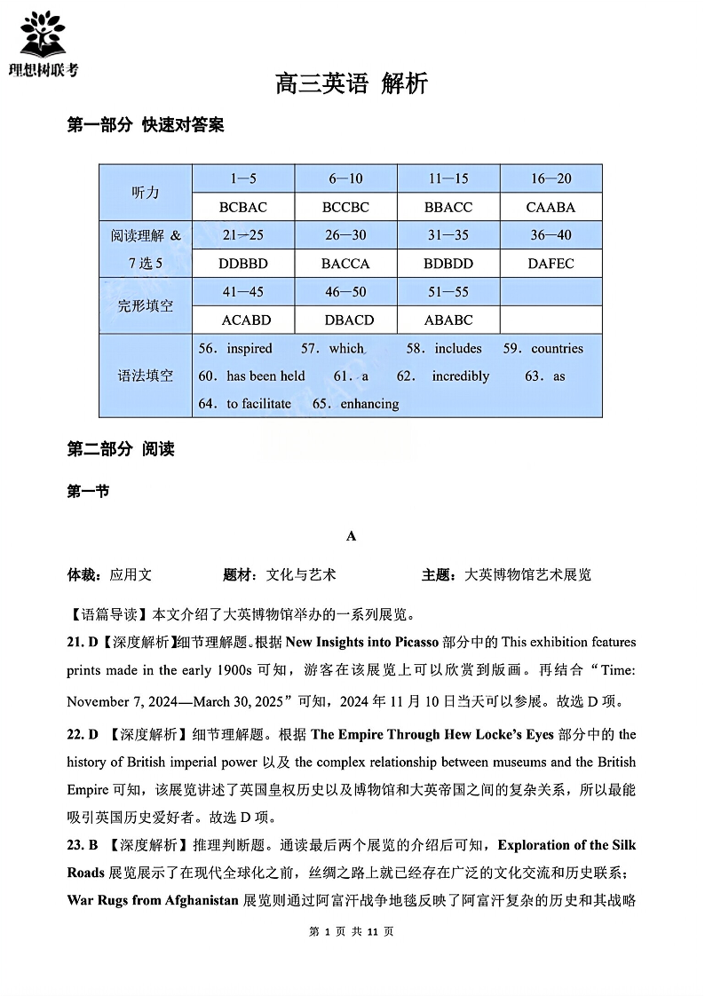 东北三省精准教学联盟2025届高三下学期3月联合模拟英语答案
