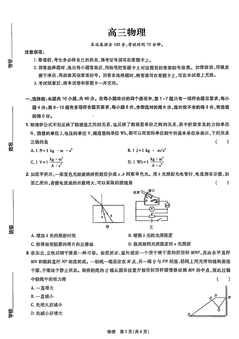东北三省精准教学联盟2025届高三下学期3月联合模拟物理