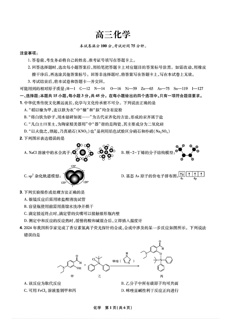 东北三省精准教学联盟2025届高三下学期3月联合模拟化学+答案