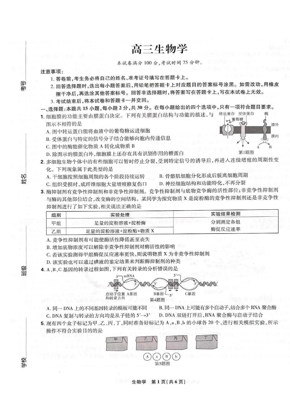 东北三省精准教学联盟2025届高三下学期3月联合模拟生物