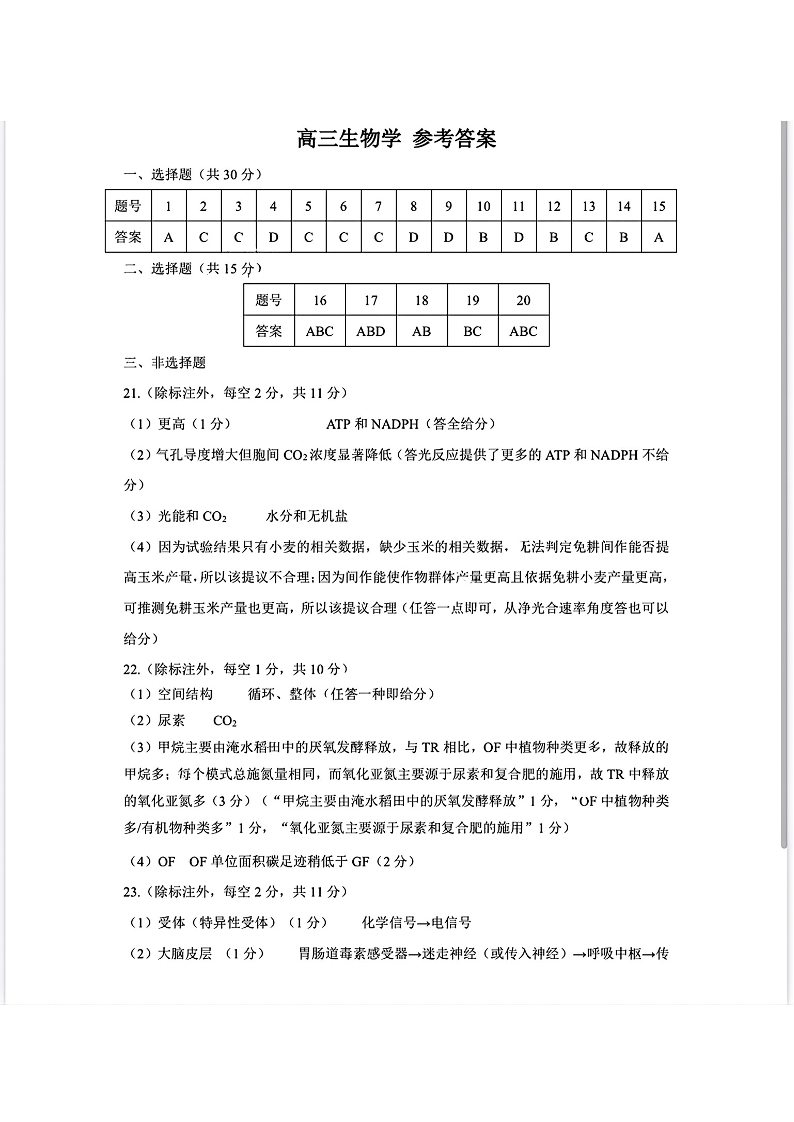 东北三省精准教学联盟2025届高三下学期3月联合模拟生物答案