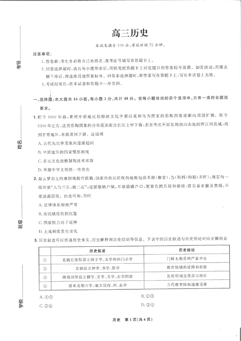 东北三省精准教学联盟2025届高三下学期3月联合模拟历史