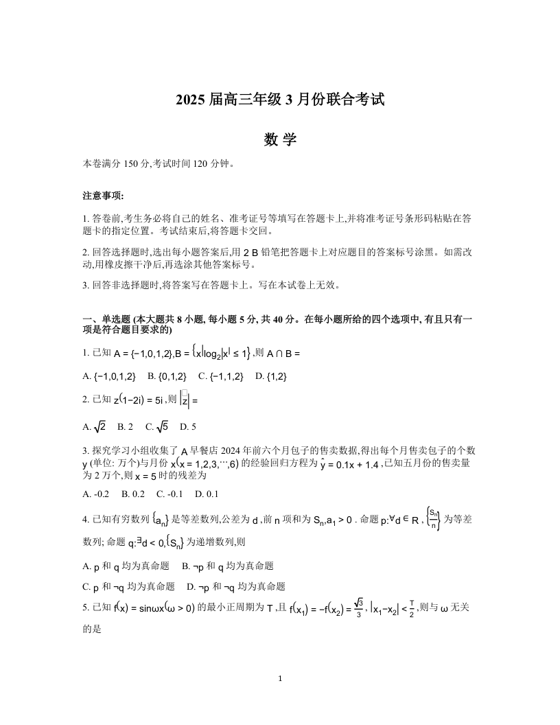辽宁省点石联考2025届高三下学期3月联合考试数学