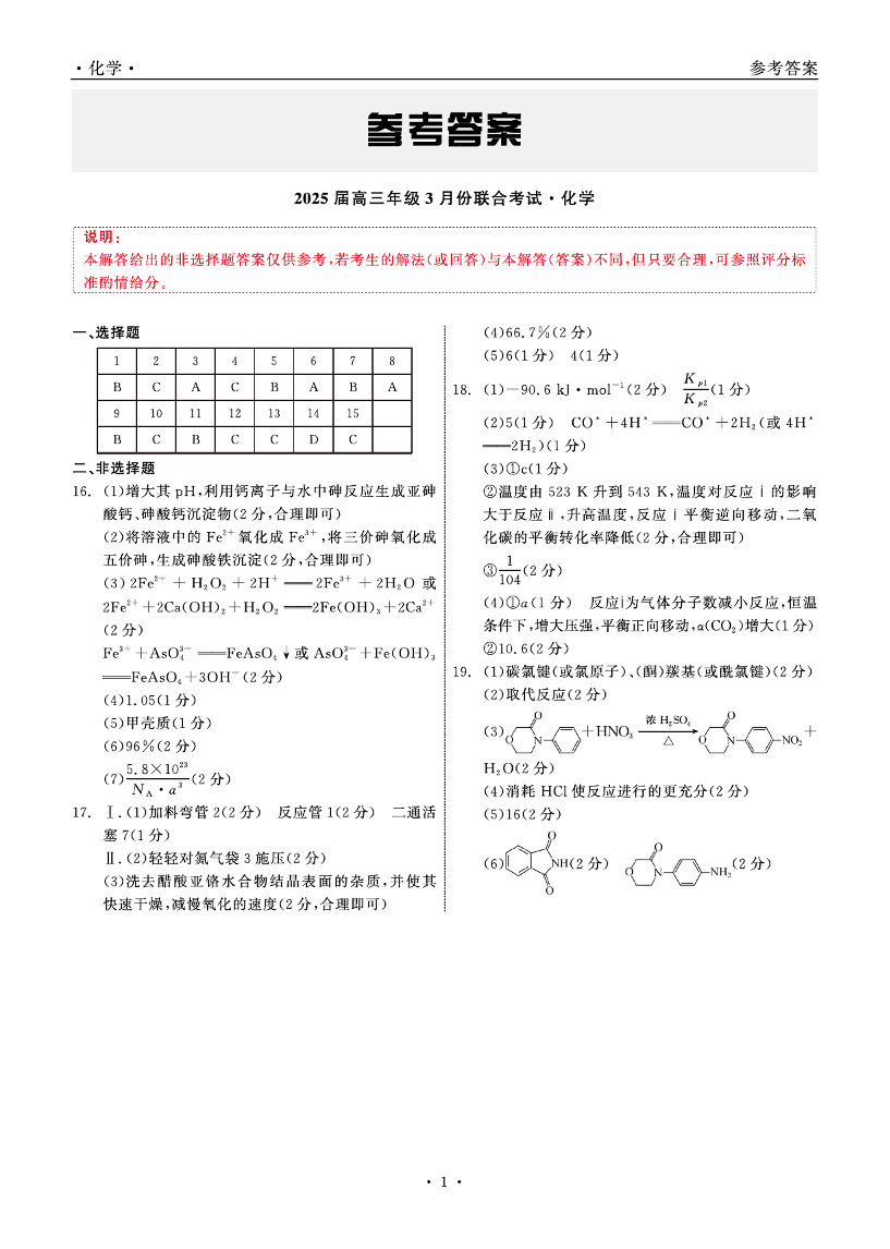 辽宁省点石联考2025届高三下学期3月联合考试化学答案