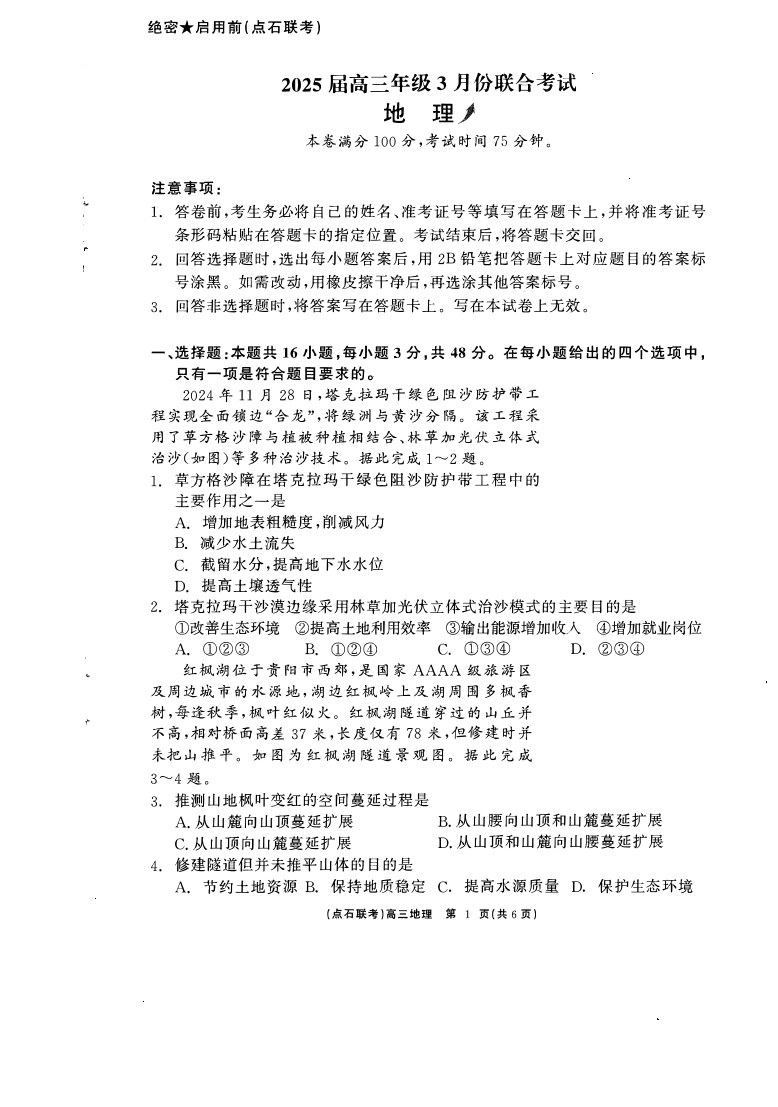 辽宁省点石联考2025届高三下学期3月联合考试地理