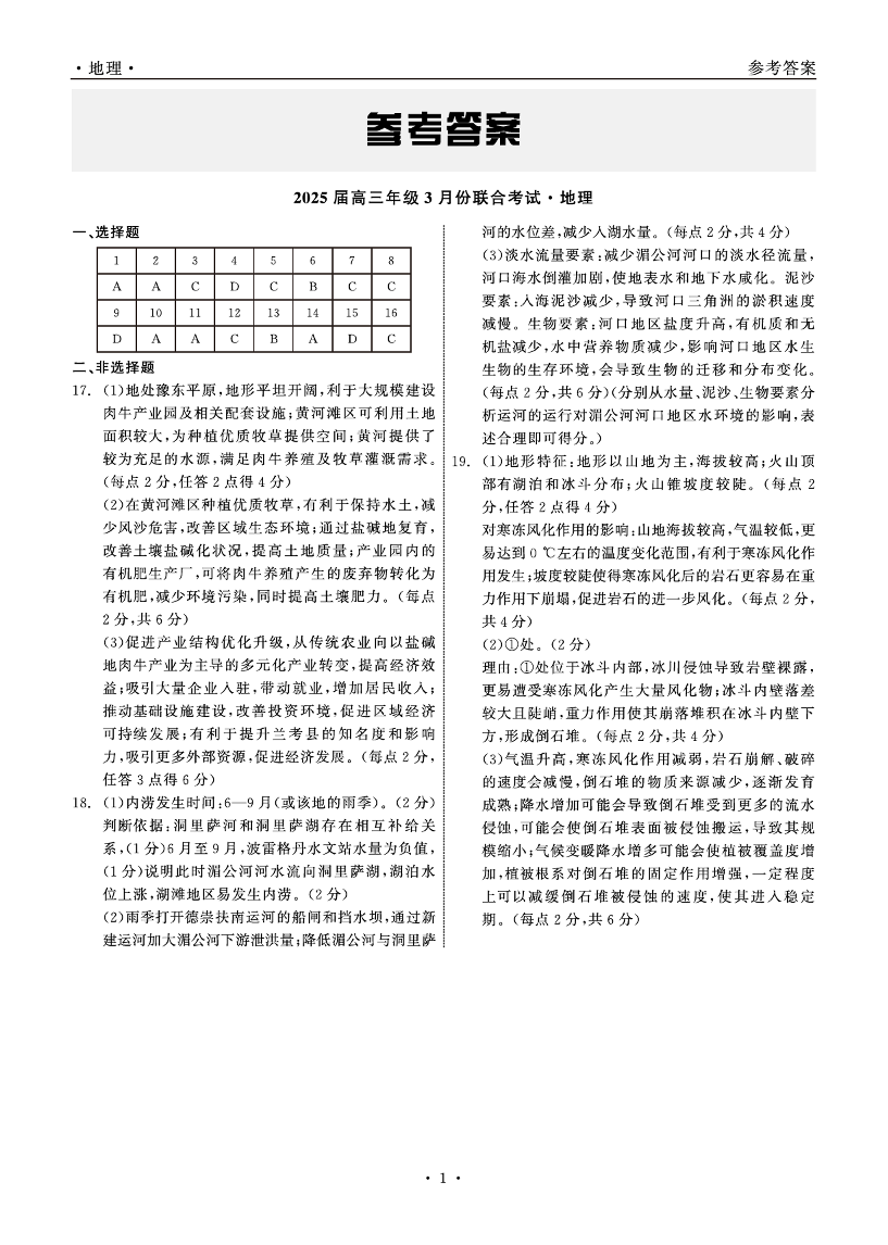 辽宁省点石联考2025届高三下学期3月联合考试地理答案
