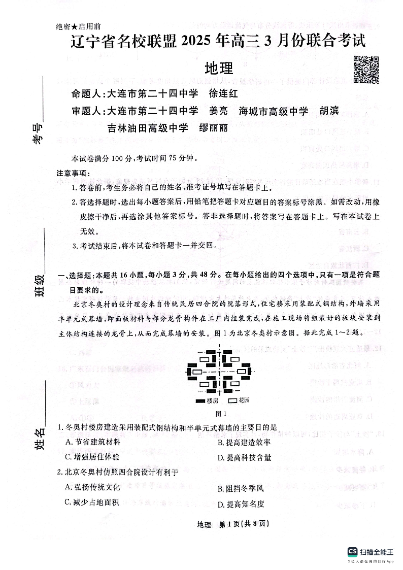 辽宁省名校联盟2025届高三下学期3月联合考试地理