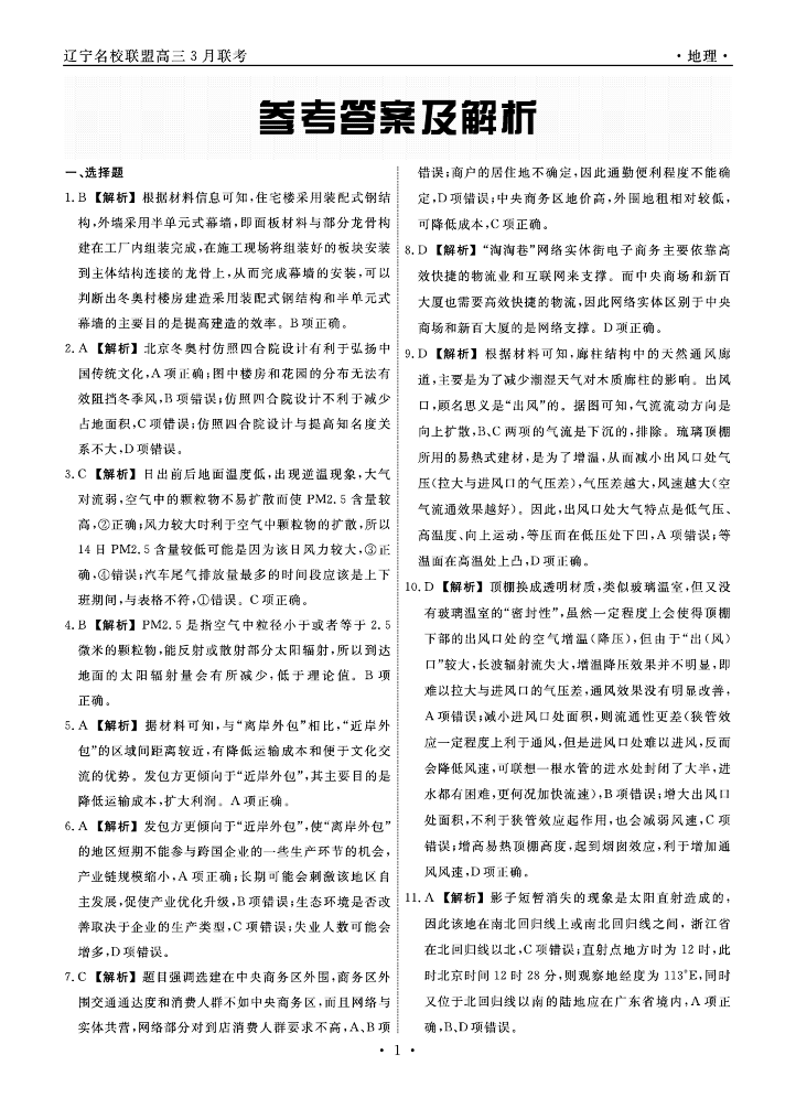 辽宁省名校联盟2025届高三下学期3月联合考试地理答案
