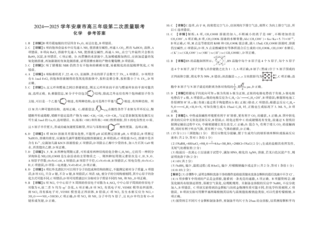 陕西省安康市2025届高三下学期第二次质量联考(安康二模)化学答案