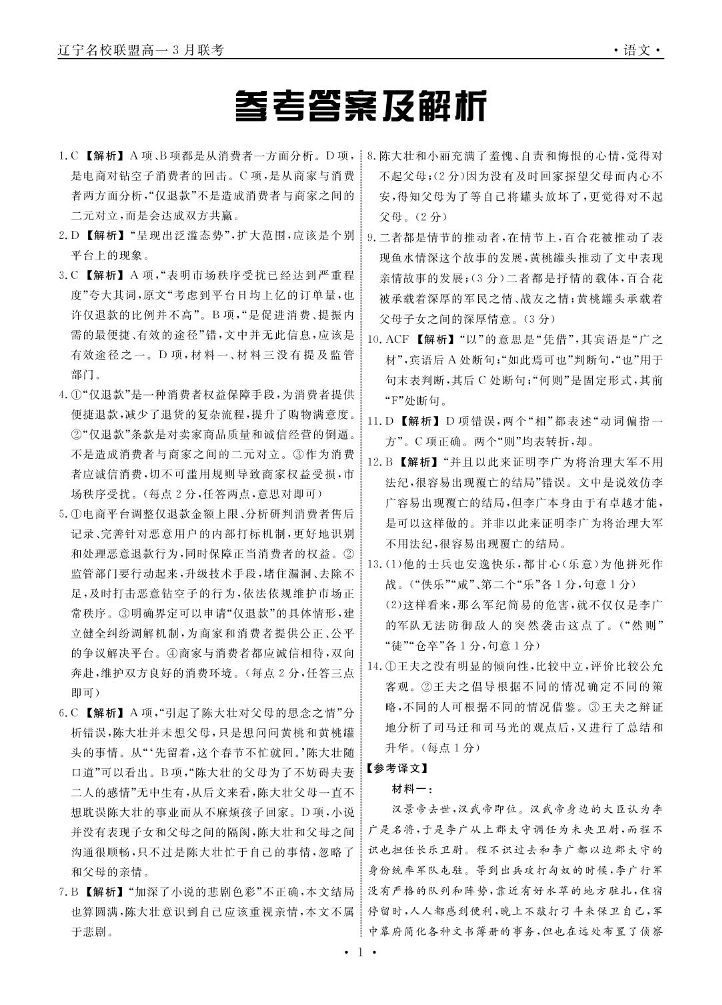 辽宁省名校联盟2024-2025学年下学期3月高一联考语文答案