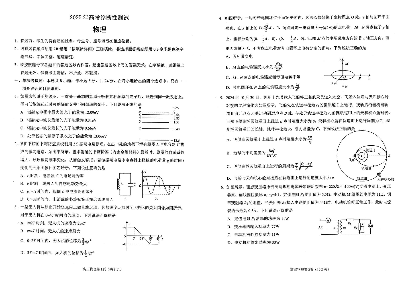 山东省烟台市2024-2025学年下学期3月高三诊断性测试(一模)物理