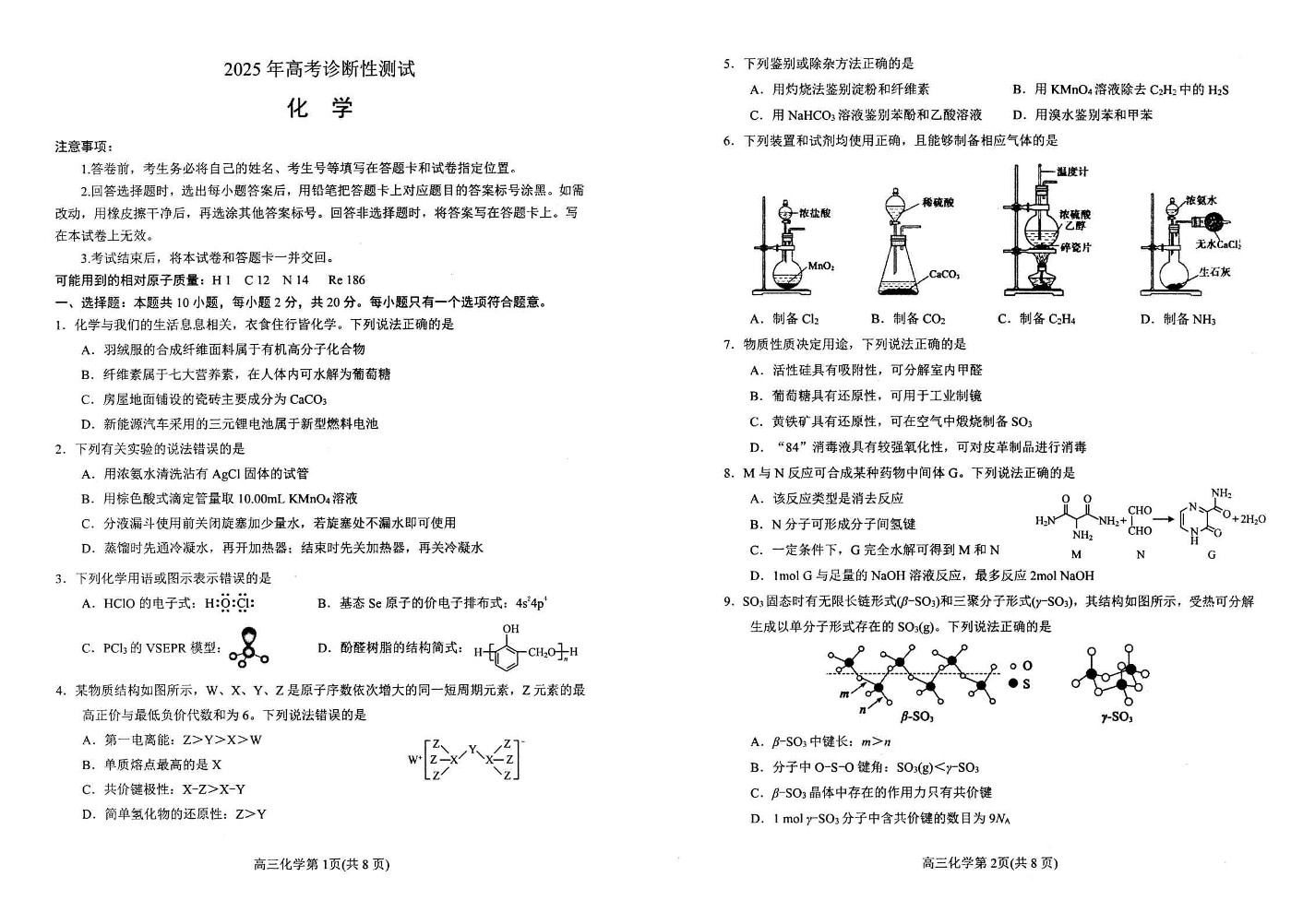 山东省烟台市2024-2025学年下学期3月高三诊断性测试(一模)化学