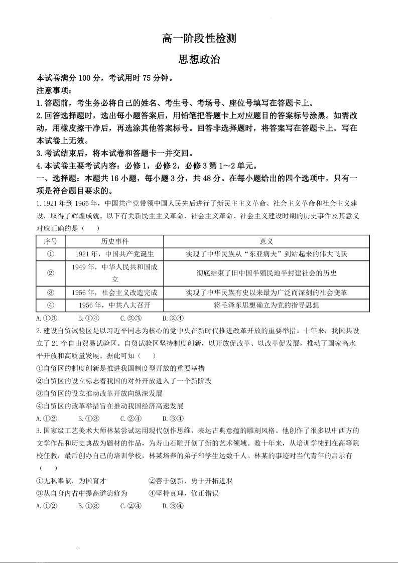 甘肃省白银市2023-2024学年高一下学期5月期中考试政治+答案