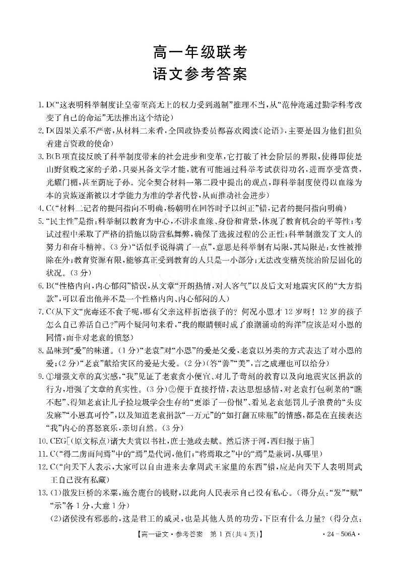 贵州省遵义市2023-2024学年高一下学期5月期中考试语文答案