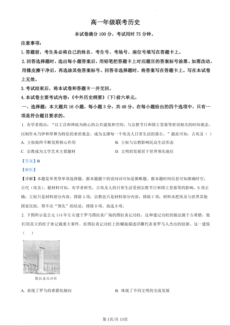 贵州省遵义市2023-2024学年高一下学期5月期中考试历史(精品解析版)