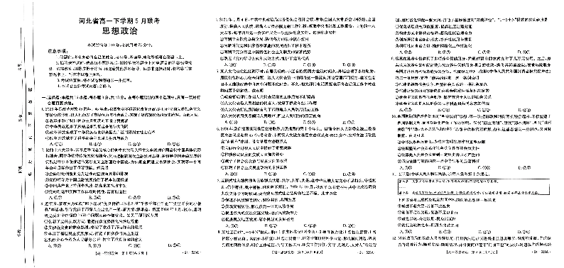 河北省保定市部分示范性高中2023-2024学年高一下学期5月期中考试政治