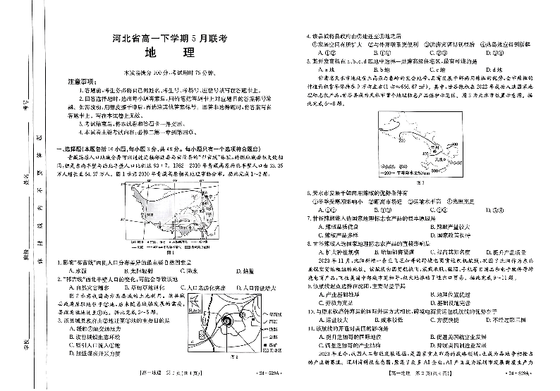 河北省保定市部分示范性高中2023-2024学年高一下学期5月期中地理