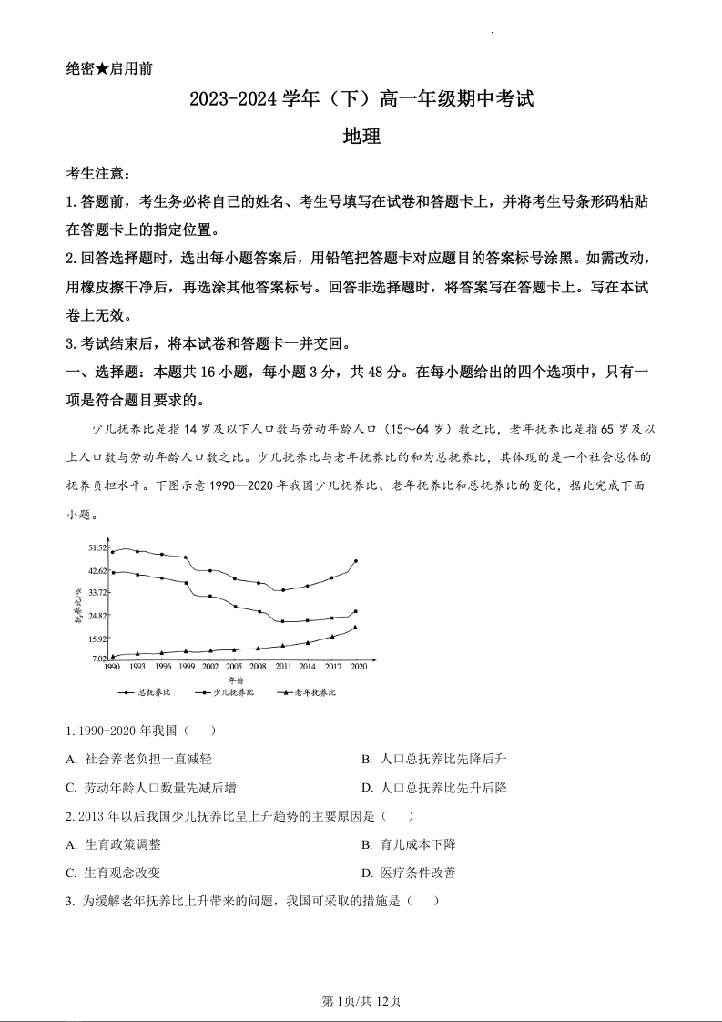 河南省部分学校2023-2024学年高一下学期期中联考地理(精品解析版)