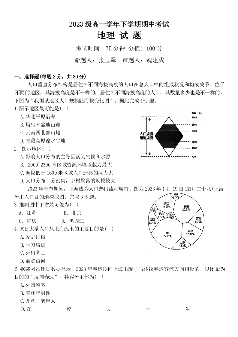 黑龙江省牡丹江市第一高级中学2023-2024学年高一下学期5月期中考试地理+答案